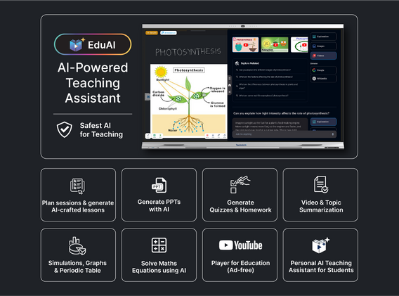 Create AI-crafted lessons, quizzes, homework, PPTs & summarize lectures. Solve math equations, explore simulations, and enjoy an ad-free YouTube player with the safest AI for teaching!